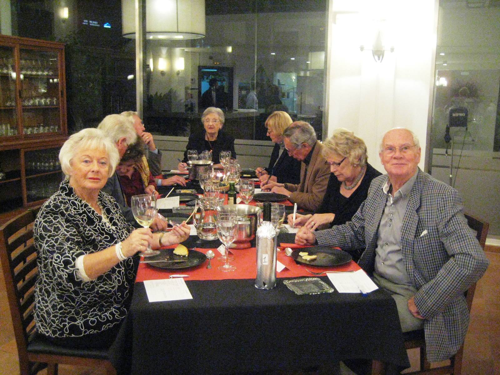 This tasting, which was held at the Restaurant Salamandra in Moraira, a new venue for the Society, followed immediately on from the Annual General Meeting. As is customary, the newly elected President presents his personal wine selection at this tasting. Tim Fawle who had been elected an hour previously, chose to present his wines as a blind tasting, which meant we did not know which wine we had tasted until the end of the evening.