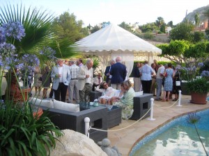 Members enjoying pre dinner drinks in the gardens