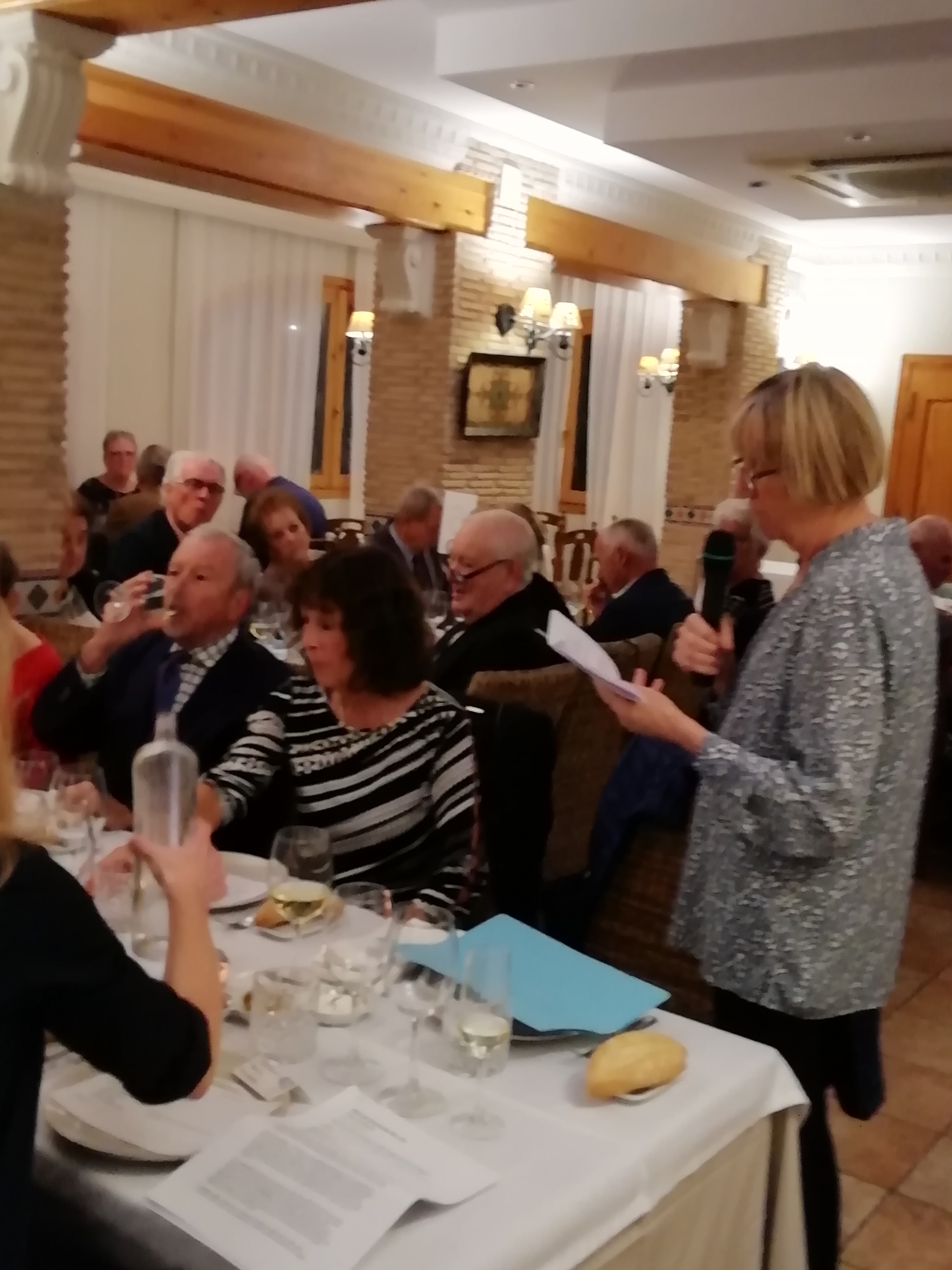A new venue for the CBWS, 55 members gathered at Restaurant Canali to savour the wines presented by Casa del Vino, Javea. The food was delicious and beautifully prepared and the five wines provided a superb accompaniment and talking point throughout the evening. President Maureen Holiday introduced the meeting and Vice President Tim Fawle welcomed Thamar Kolsteran from Casa del Vino who gave us an informative and very enjoyable presentation of their chosen wines. She explained that her brief had been to select different wines of high quality from regions other than our local DO’s such as Valencia and Alicante.