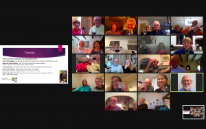 The February Zoom tasting was hosted by Andrew and Kathy Johnson and attended by 32 members in 17 locations with a theme “Fun with 3 Grapes”